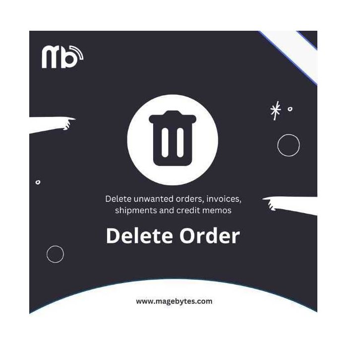 The Delete Order extension allows Magento 2 store administrators to permanently delete unwanted orders along with their related documents such as invoices, shipments, and credit memos directly from the admin panel.